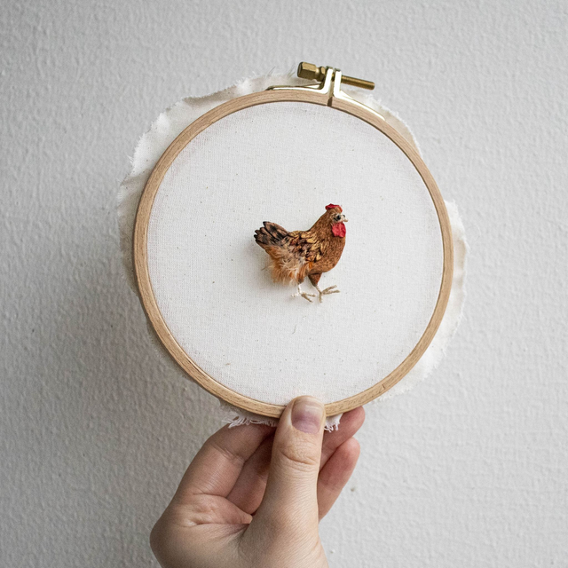 HEN | Ginger - kana - Hand embroidered bird brooch